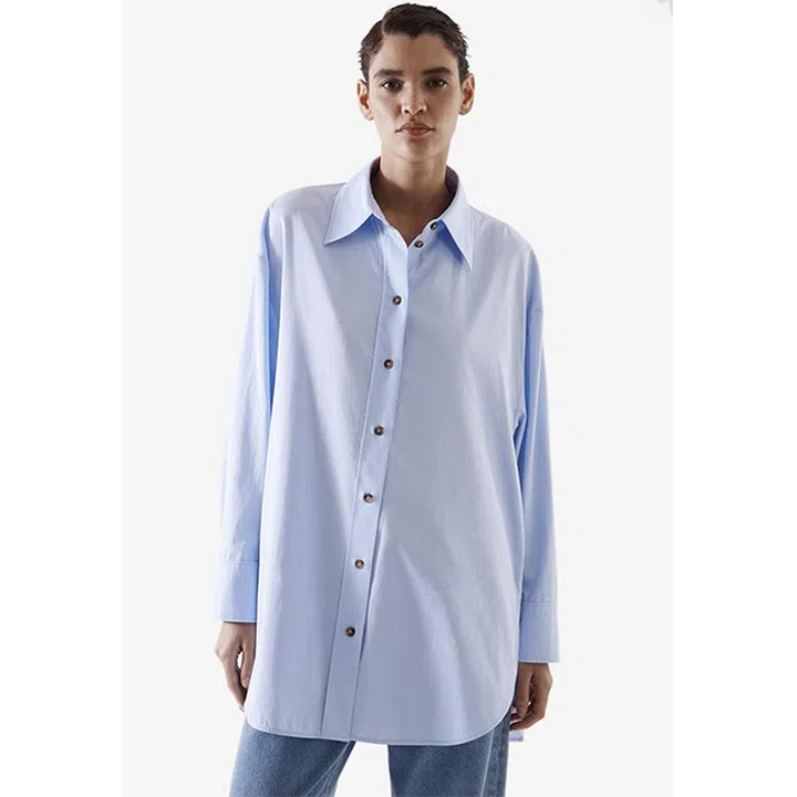 Klarra这款驼色衬衣,采用100%全棉制作,剪裁宽松略带弧度。若搭配开衣襟穿,里面穿件crop top或背心就很好看。推荐搭配:入手不悔的经典首饰