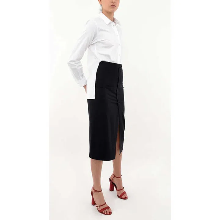 金多美在剧中也经常以深色系衬衫亮相,而且有不同的领口设计。选择全黑或全海军蓝的色调,色彩朴实又有现代感。推荐搭配:Fendi Peekaboo ISeeU手袋。