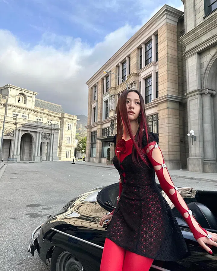 今年Jisoo迎来首张个人专辑《ME》,并释出主打曲《꽃FLOWER》MV。其中Jisoo在MV里大跳“手花舞”的片段,就以纽约品牌Mirror Palais小黑裙搭配了该中国设计师品牌RUi的红色挖洞袖套,全身黑红配色,对比鲜明强烈。