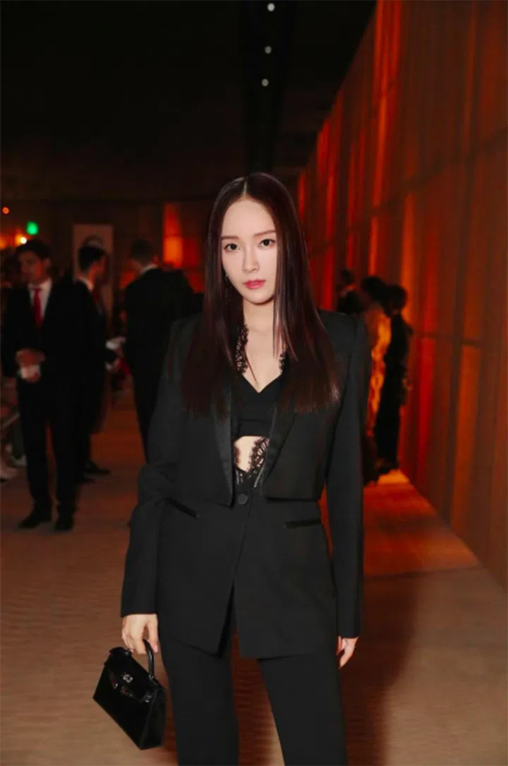 这个造型Jessica以Tom Ford修身喇叭裤搭配高跟鞋,显得身材极为高挑(她的身高其实只有163cm哦)。再拎上20cm的小巧鳄鱼皮革Kelly手袋,彰显精致女人味。