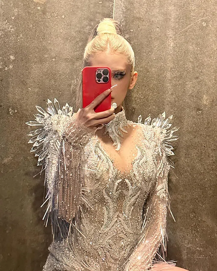 LE SSERAFIM成员许允真,新年照以公主般的露肩蝴蝶结造型亮相,释放元气满满的少女活力。身上闪耀的水晶元素,也营造出一种华丽而复古的个性气质。