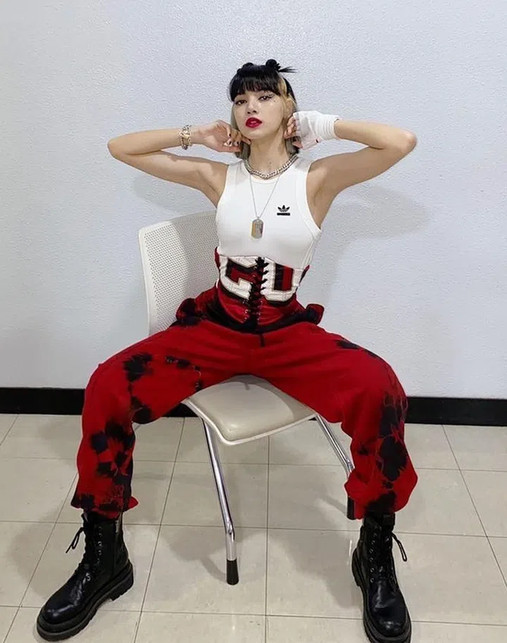 近年扎染超夯,有人认为它不入流,但事实证明这个源自街头的元素依然是王道。大红色裤子或许不是每个人能驾驭,但Lisa身上这条渐层渲染的红色tie dye裤,随便搭件白背心或T恤即超有型!