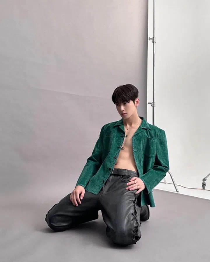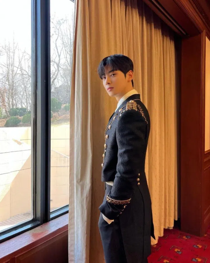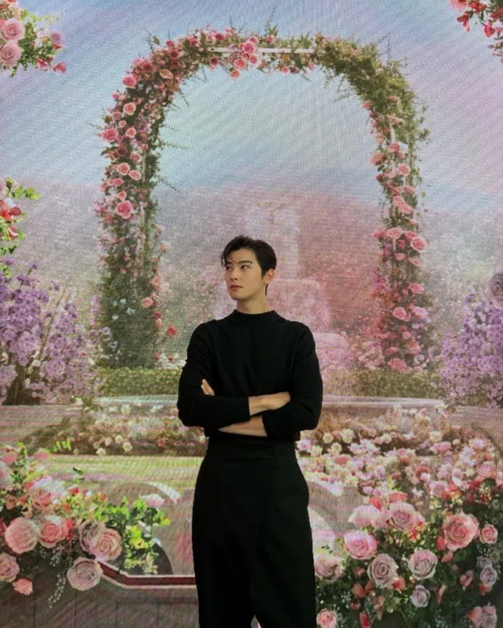 黑色是车银优常穿的造型。去年出席Dior首尔圣水旗舰店的2022冬季成衣系列发布会时,一身全黑造型就非常符合他个性——低调含蓄却充满时尚感 。而搭配的阔腿裤则剪裁独特,高腰设计也尽显他高挑身材的优势。