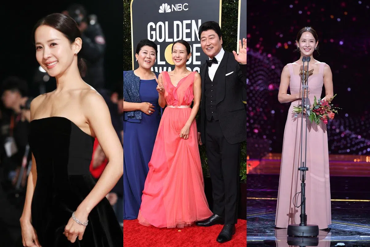 13 Jan 2020《寄生上流》女主角曹如晶的红毯时尚《寄生上流》是去年的年度韩国电影,不仅扫光韩国各大电影节奖项,继《第72屆坎城影展》成为首部赢得“金棕榈奖”的韩片又在上周的《第77届金球奖》拿下“最佳外语片“,同样是首部赢得金球奖的韩国电影。在戏中饰演上富家太太的曹如晶,也是现在热播韩剧《99亿的女人》的女主角。《女友》为你盘点她出席典礼的红毯造型。NUYOU TeamCELEBSfashionredcarpetspottedwhoworewhat2020 GOLDEN GLOBES RED CARPET上周于美国举办的《第77届金球奖》,曹如晶以一袭桃红色极地礼服亮相红毯,胸前的立体荷叶剪彩让她穿出极致柔美的气质。 2020 GOLDEN GLOBES RECEPTION在《第77届金球奖》前一日的接待宴,曹如晶身穿韩国品牌Avouavou浅黄色连衣裙,既端庄又高雅。 2019 KBS DRAMA AWARDS曹如晶凭韩剧《99亿的女人》中精湛的演技赢得《2019年KBS演技大赏》女子组“最优秀赏”,一袭Avouavou前粉色极地连衣裙完美演绎less is more的时尚态度。 2019 KOREAN WAVE AWARDS去年底举办的《第9届韩流大赏》中,曹如晶选择以Moschino 2020春夏系列黑垂坠式连衣裙亮相,垫肩+巴洛克风金属“相框”装饰为简洁的造型增添一丝文艺气息。 2019 BLUE DRAGON FILM AWARDS曹如晶身穿Avouavou为她量身定制的平口黑丝绒礼服步入《第40届青龙电影奖》红毯,以低调的奢华造型夺下“最佳女主角”奖。 2019 BUSAN INTERNATION FILM FESTIVAL曹如晶在《第24届釜山国际电影节》再次以韩国品牌Avouavou服装亮相,紧身的剪裁突显了她婀娜多姿的曲线。 2019 CHUNSA FILM ART AWARDS曹如晶凭《寄生上流》赢得了不少奖座,在《第24届春史电影奖》她身穿Blumarine 2019秋冬系列花卉印花连衣裙夺下“最佳女主角” 。 2019 CANNES FILM FESTIVAL《寄生上流》在去年坎城影展获得“金棕榈奖”,曹如晶也特地前往坎成出席,穿着Avouavou为她量身定制的黑低胸礼服步入红毯,隔外冷艳动人。 分享文章: