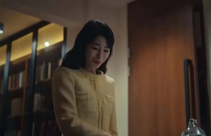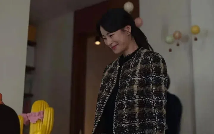 林智妍在剧中的粗花呢造型数不胜数,大多数都是套装造型。其中这款来自VEM.VER的鹅黄色套装,风格知性温婉,哪怕林智妍表情狰狞、笑里藏刀,都仍衬托出脱俗的优雅气质。