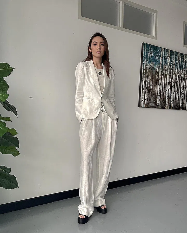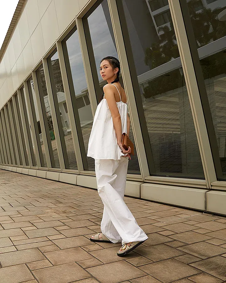 Bonnie以精致发辫造型搭配宽松的白色套装及凉鞋,展现从容又松弛的文艺美人气质。出门游玩散步、逛街喝咖啡、朋友小聚,既上照又让你一整天都穿得舒舒服服。
