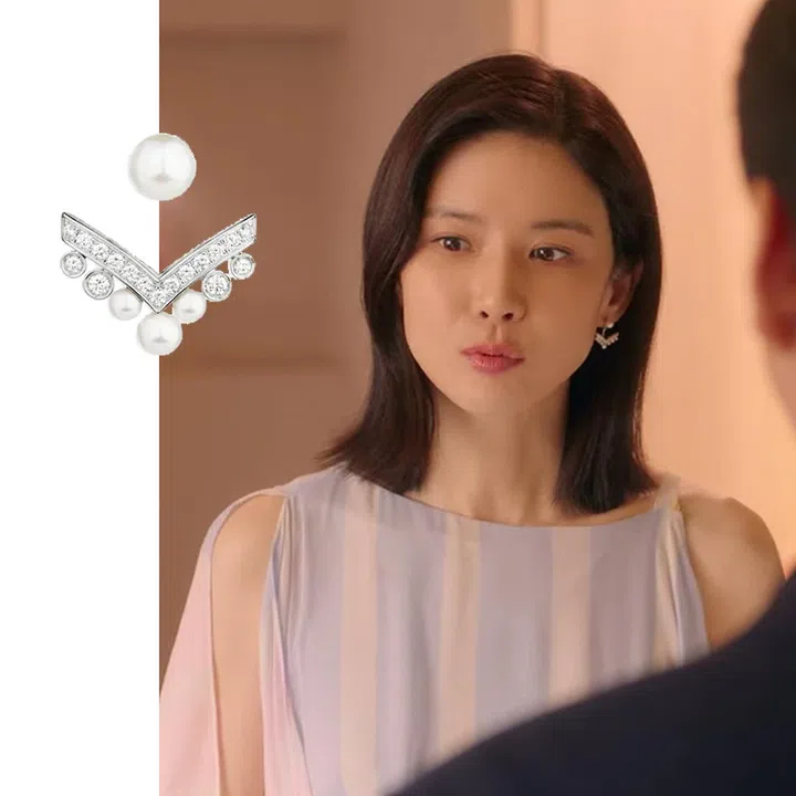 李宝英闯进家教房内并质问对方为何出手打人时,耳上的超迷你耳钉为Dior Mimirose款式。