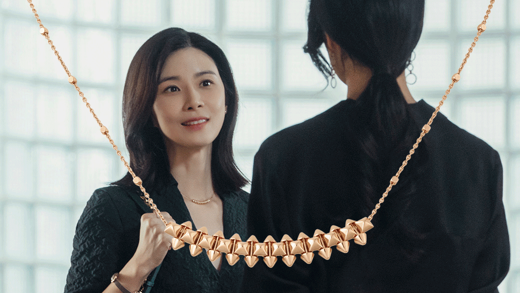 这幕李宝英出面阻止婆婆打女佣的“居家”场景,身上的珠宝也“不手软”,她佩戴了Bvlgari经典之一的Divas' Dream项链。