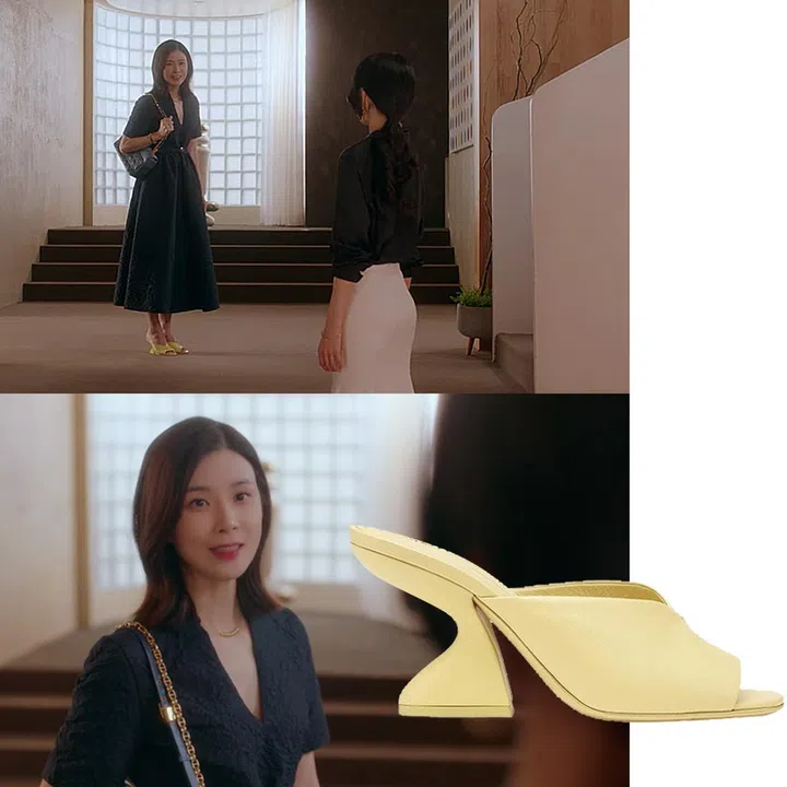 李宝英在家里穿的都是穆勒鞋款,可能是为了方便穿脱。在第5集穿的那双透明跟“玻璃鞋”,是Tod's春夏新款。
