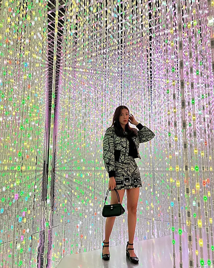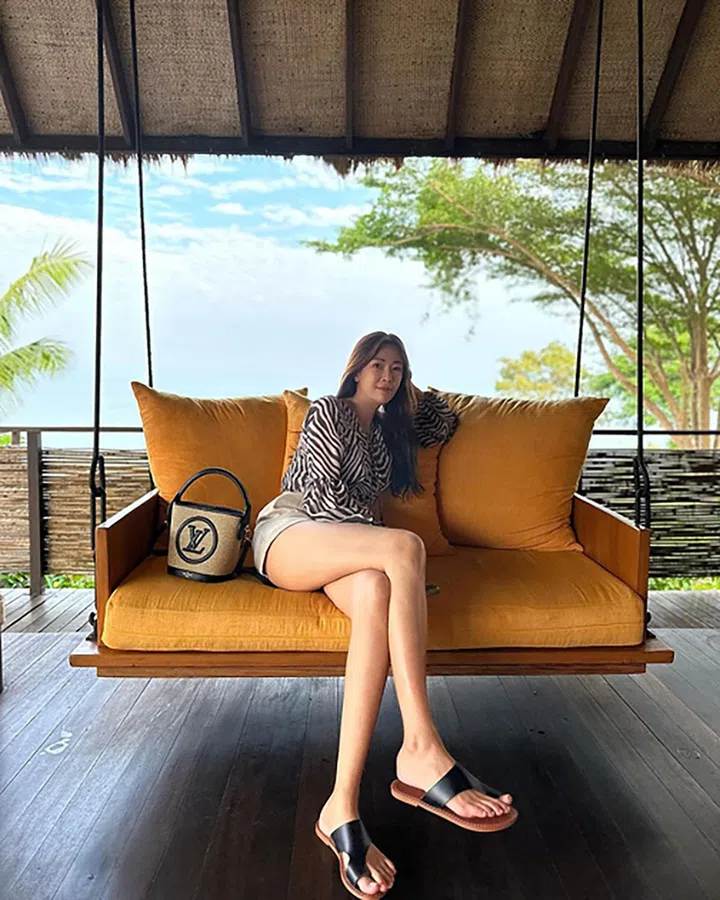 Louis Vuitton的Capucines手提肩袋,想必是刘子绚的爱包之一吧。除了LV与Yayoi Kusama的联名,她另有一款粉色的Capucines手提袋,围巾缠绕了手柄,让这款包包另有一种魅力,特别适合在Barbiecore正流行的夏天。