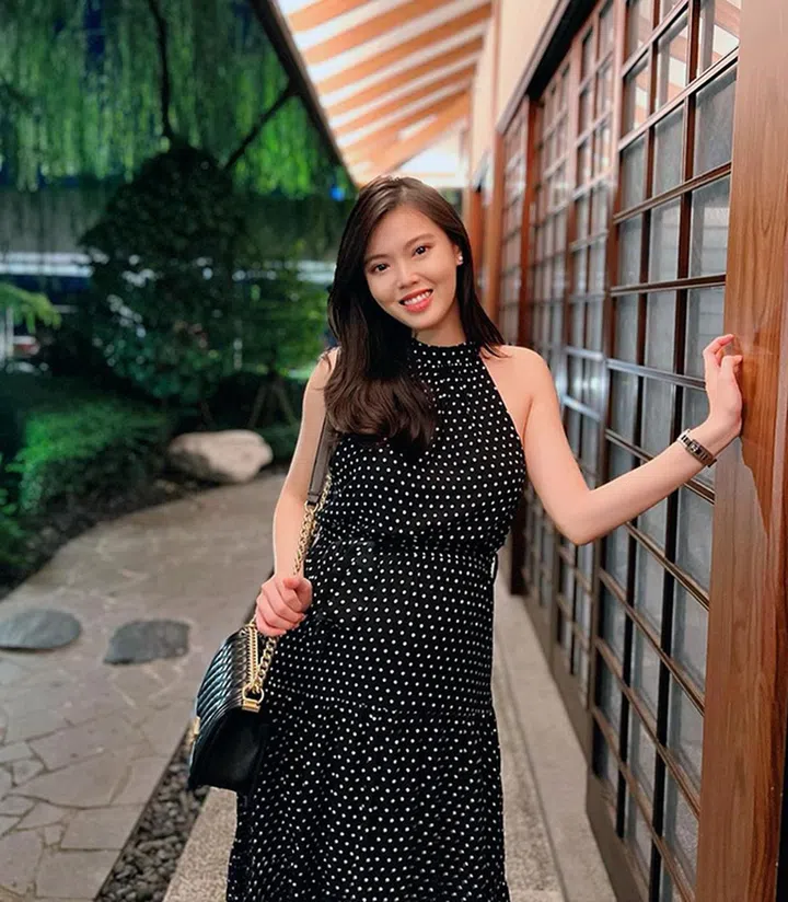 谁说准妈妈就不能“少女”和“梦幻”?谢静仪就穿上独角兽色系的无袖连身裙,搭配经典款包包,用最美的笑容来展现准妈妈的好心情。