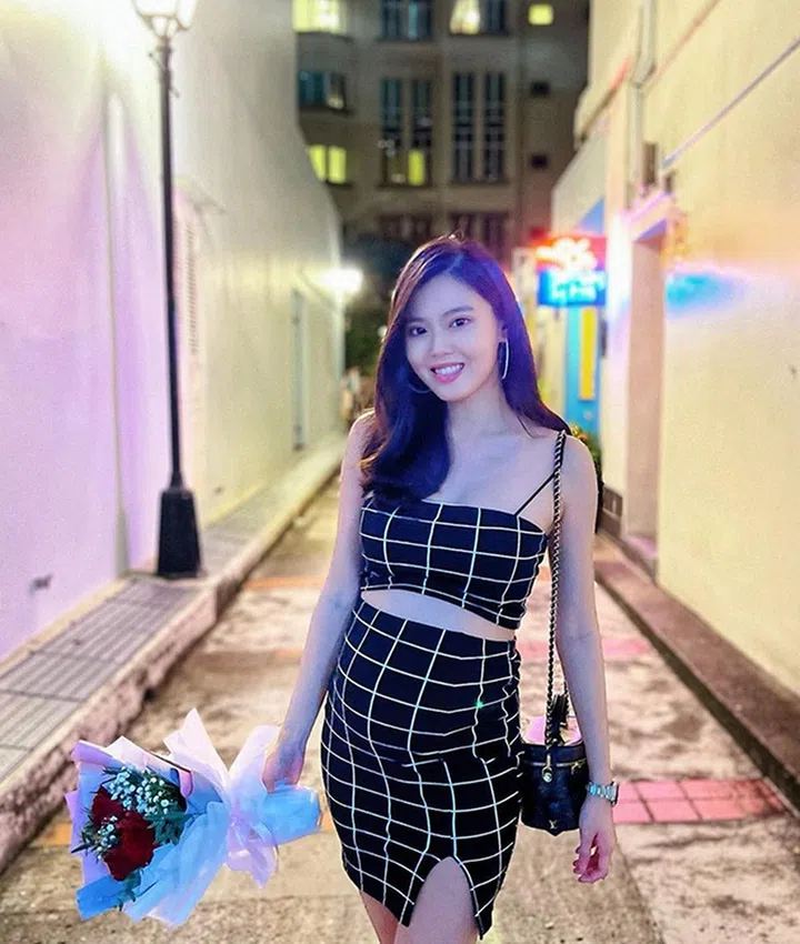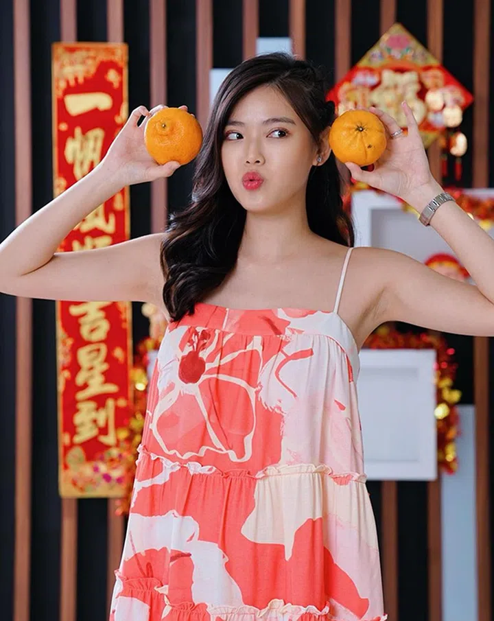 早前的农历新年期间,谢静仪就穿上红白色印花吊带连身裙,俏皮地给大家拜年。