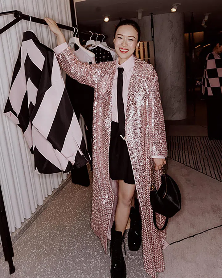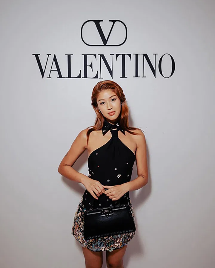 林慧玲本月出席Valentino Black Tie活动,穿着秋冬系列的亮眼金属粉大衣及粉色衬衫。黑领带上带金属V标,设计低调又具品牌辨识度。