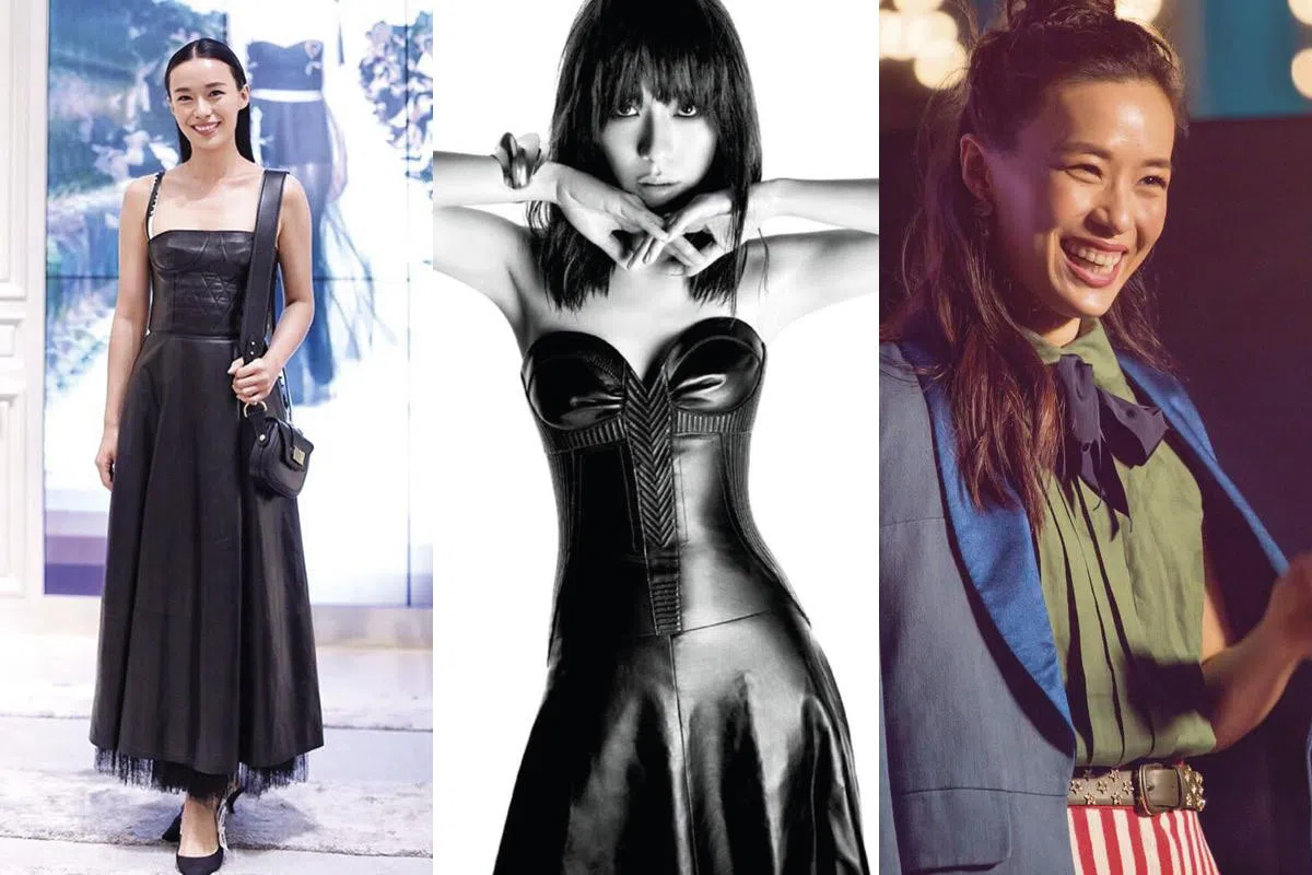 早前出席Dior位于ION的“快闪店”时,Rebecca身穿品牌春夏的连衣裙,虽同属皮革连衣裙,但运动风的文字间肩带及裙摆露出一截薄纱,让硬挺的皮革多添浪漫、柔美气质。