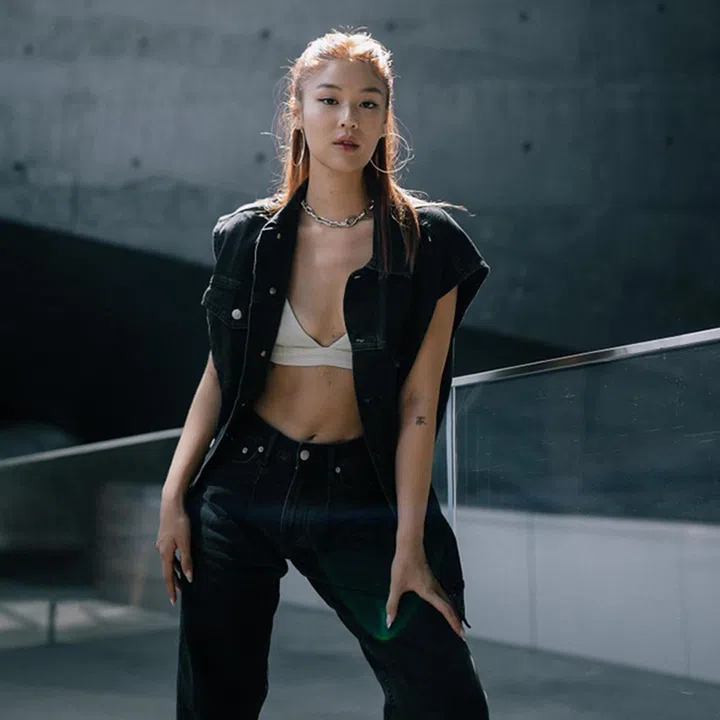 比如陈一心在逛快闪店时,以Jennie形象照中所穿的牛仔胸衣叠搭内衣,并搭配宽松休闲的牛仔裤装。两件胸衣叠穿的方式未尝不可,不同色、不同剪裁,不同材质,不妨试试会组合出什么效果。
