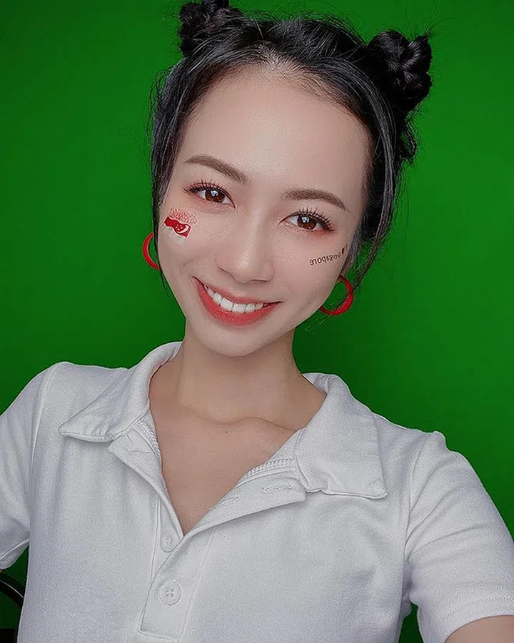 停不下来的罗美仪,总是点子多多!最近在做吃播的她,穿上白色上衣,搭配了俏丽的丸子头,再在脸上画上“国庆妆容”,可不可爱?