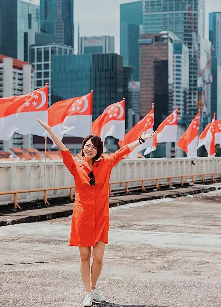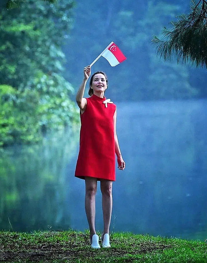 在一整排飘扬着的新加坡国旗下,许美珍以亮眼的红裙传递正能量。她发文说,在抗疫的这两年,国人们展现了强大的韧性和力量。自己更加感恩所拥有的,并相信会有更多丰收和富足的到来!