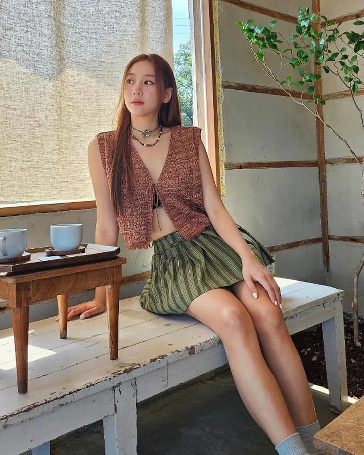 活力十足又很解暑的针织单品持续流行!怎么穿得出彩?且看Tasha示范:褐色的针织外套+黑色内搭 —— 整体造型可是又甜又辣!