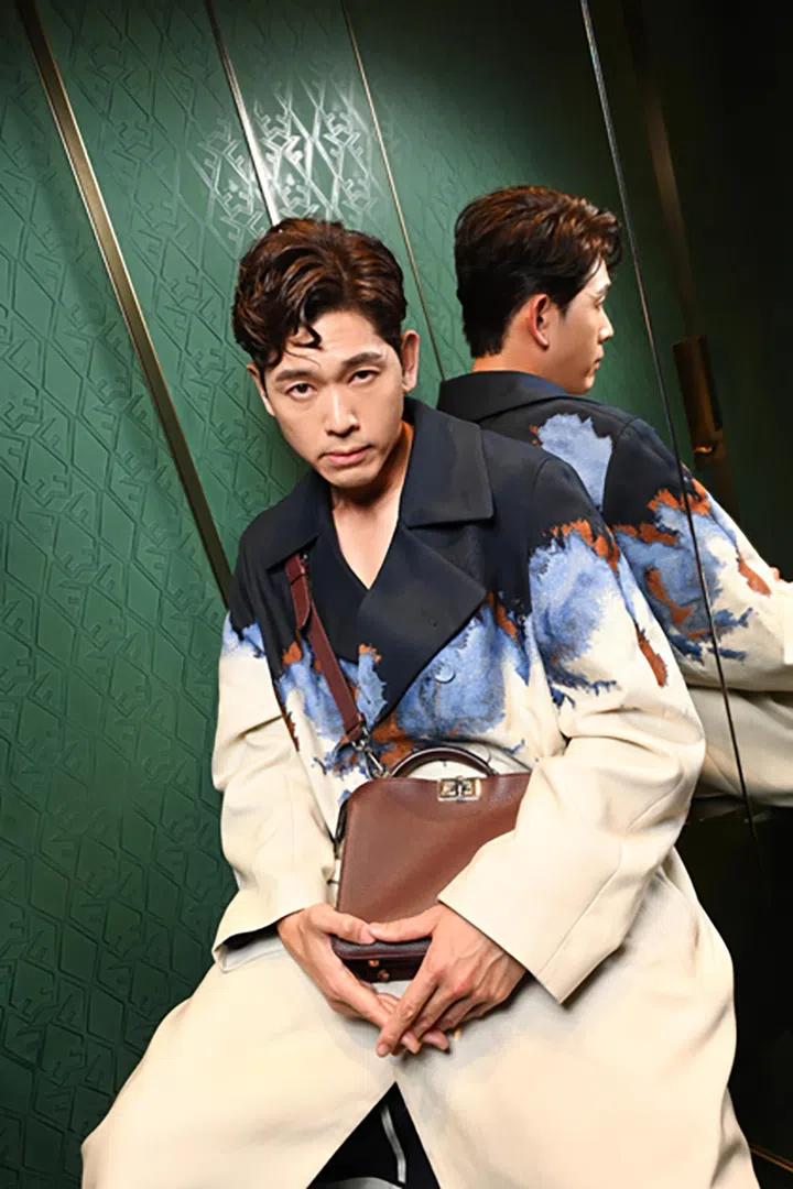小编个人当晚最爱黄俊雄身上这套橙色印花的牛仔造型,全身同色系穿搭,色彩明亮大胆但又仍保持低调奢华感。他随身搭配的手袋是黑色款Peekaboo ISeeU XCross,不过他和NUYOU分享:自己私下最爱的Fendi袋款,其实要数超大容量的Peekaboo ISeeU Forty8提袋,因为带去工作超方便。