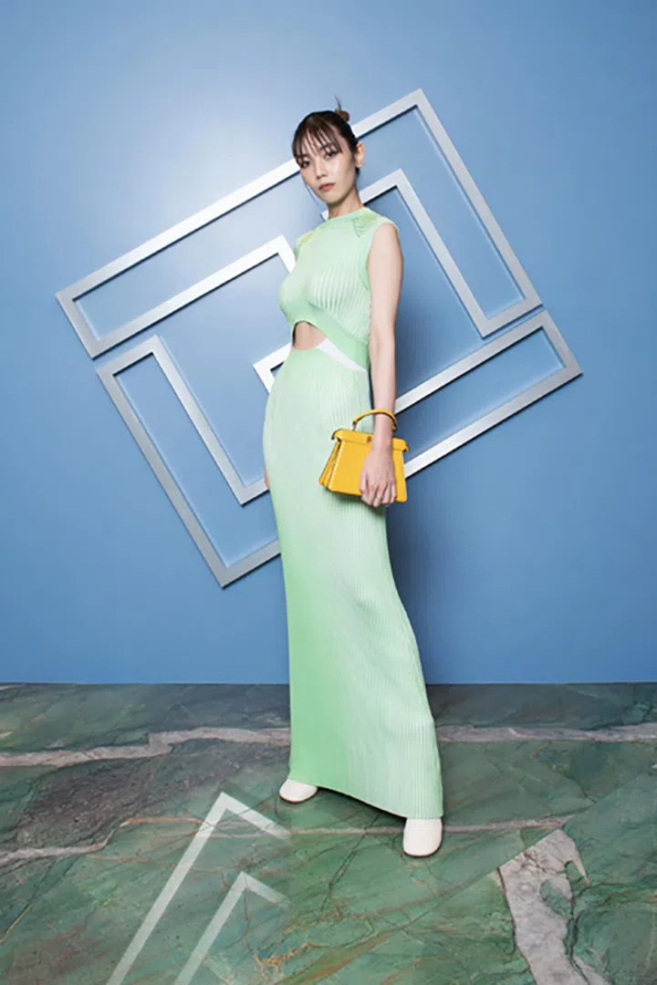 洪丽婷近期以不同“九头身造型”出席活动,在人群中显得格外高挑、亮眼。其中这身Fendi绿色挖洞针织棉连衣裙,《女友》本月封面人物李凯馨在拍摄内页时也有穿着。另外,她携带了色调醒目的黄色的Peekaboo ISeeU Petite当手握袋,相比男星们的全粒面皮革Peekaboo,该柔软光滑的袋身更显女性气质。
