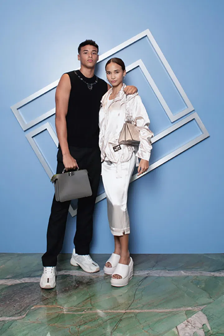 Iman Fandi及Ilhan Fandi姐弟(足球明星Fandi Ahmad及模特Wendy Jacobs的子女)也是时常出席时尚活动的常客,上图Ilhan Fandi手拎灰色款Peekaboo ISeeU Mini,姐姐则肩背今季风格犀利的Peekaboo Cut Medium米色链袋及超有辨识度的Fashion Show皮革坡跟鞋。