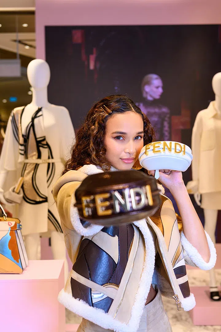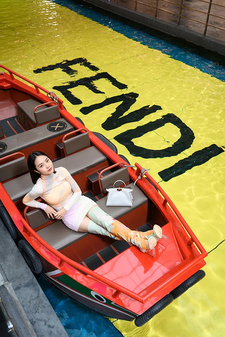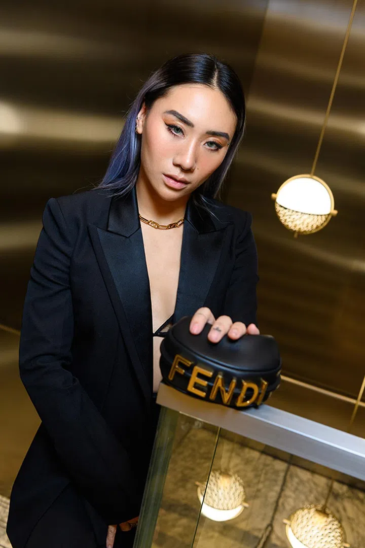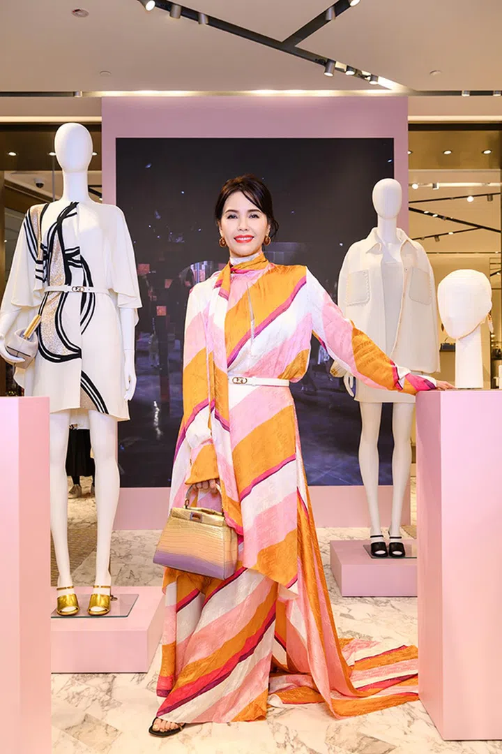 除了醉人的夜景,好多本地明星更是穿上品牌最新的2022年春夏系列出席庆祝。例如阿姐郑惠玉穿上一袭亮眼吸睛的飘逸连身裙,完美无瑕地诠释出高尚女神气质,而手里拎的Peekaboo包也为造型增添了典雅沉稳的魅力。时尚达人Yoyo则以全身洁净的白色套装现身,性感、妩媚、霸气全汇聚一身。欧萱选择穿上线条利落的短版上衣和长裙,露出健美的小蛮腰炫“腹”,脚上的标志性Fendi First高跟鞋自带狂野气质,被她驾驭得恰如其分。身材姣好的谢宛谕穿上黑色的透视连身裙,举手投足都美艳动人。除了女神们,好多男神例如向洋、陈泂江、王冠逸也帅气出席,马上就来看看明星们当晚的“Fendi时装秀”!