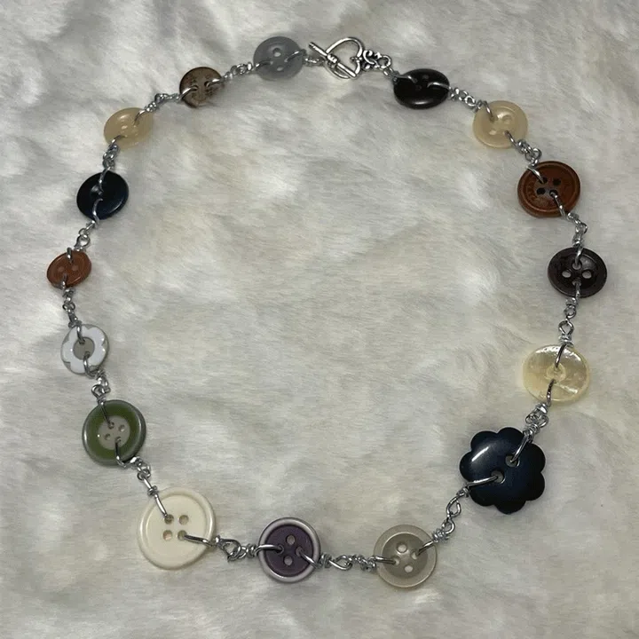 推荐:她采用的“串饰”超多样,最特别的是纽扣排列而成的项链(别家可找不到)!