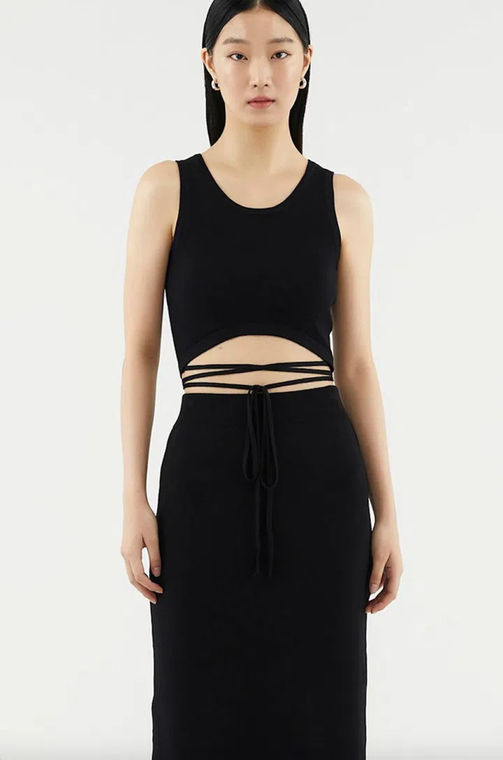 如果你很怕热,在本地也可选穿这款更加透气、清凉的短版针织背心。搭配同色系棉质长裙或亚麻长裙,就能轻松打造“氛围感美女”的性感造型。