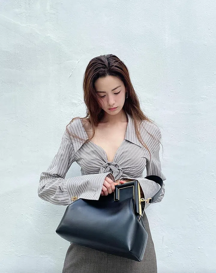 最近亚洲女星都在抢背的Fendi First手袋,你看了吗?另外,Nana的这身Fendi秋冬短版衬衣,也是该系列小编的最爱单品之一。外加她慵懒的长发造型,以及领口处露出的白皙肌肤和锁骨,实在太迷人了!