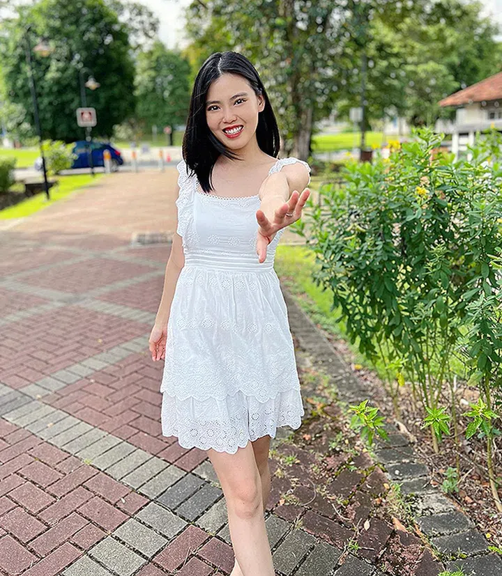 毫不张扬的鹅黄色,给人清新宁静的感觉。出门散步,陪伴家人,穿着鹅黄色吊带裙,尽情享受放松、幸福的时光。