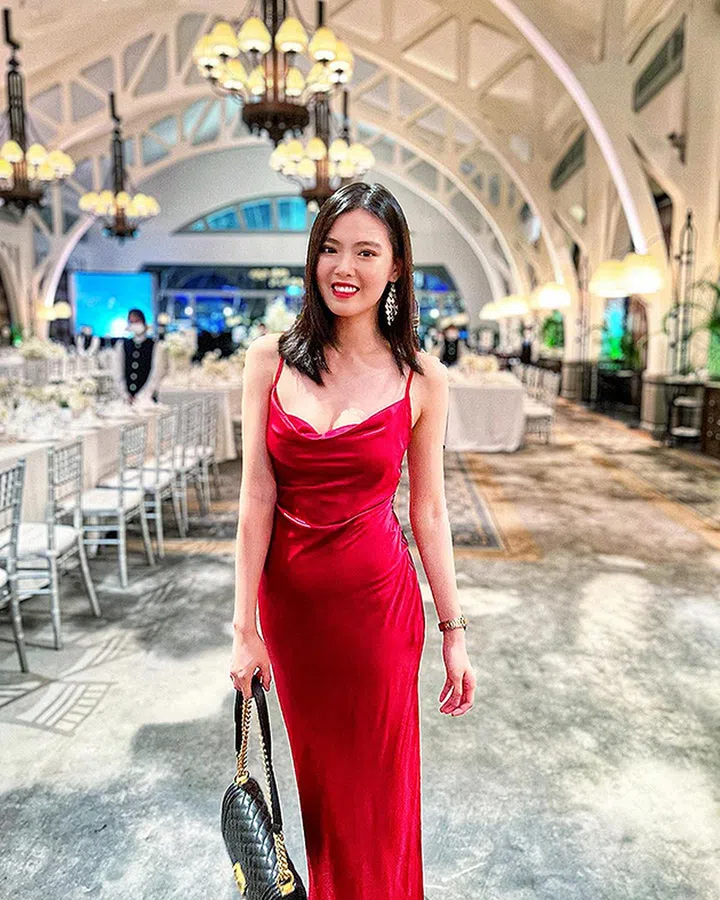 谢静仪今年5月才诞下可爱的宝宝Kyden,如今产后仍然保持着窈窕身材,穿上这件红色吊带裙,整个人更显容光焕发。