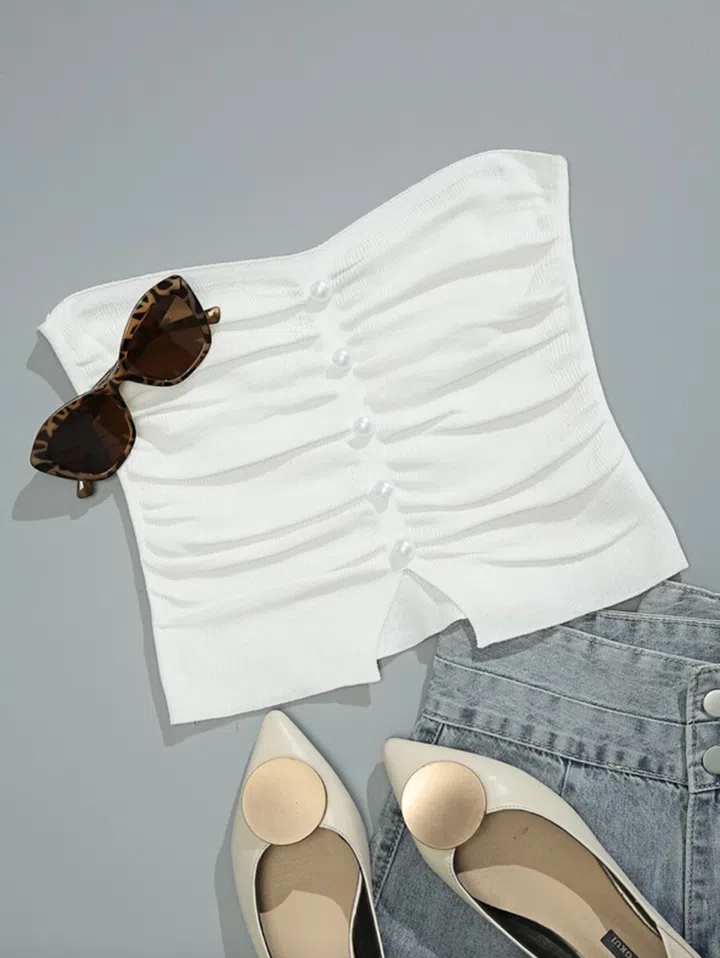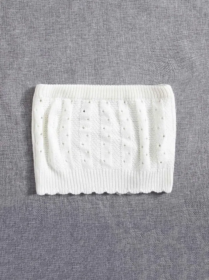 针织单品听起来仿佛不像是本地户外容易驾驭的款式,但是如果是针织抹胸,就没问题了。这款上衣Shein上所售的Cable Knit Knit Tube Top极为接近,不过尺码已近售罄,不妨看看其他类似针织或罗纹款式。