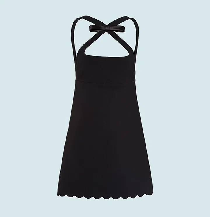 Little Black Dress, 每个人应该都有那么几件。但是这种超可爱的小黑裙款式你有吗?采用迷你裙的长度,结合scallop裙边和蝴蝶结肩带设计,尽显少女味。