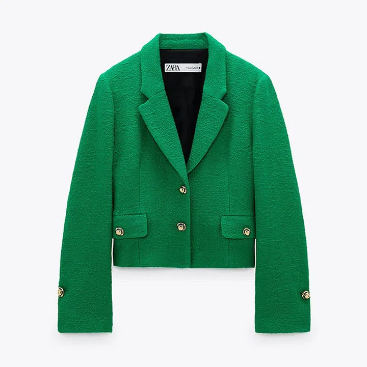 爱玩撞色的你,也可以入手一件绿色外套。内搭浅蓝上衣,再穿上一款白色裤装就很好看。