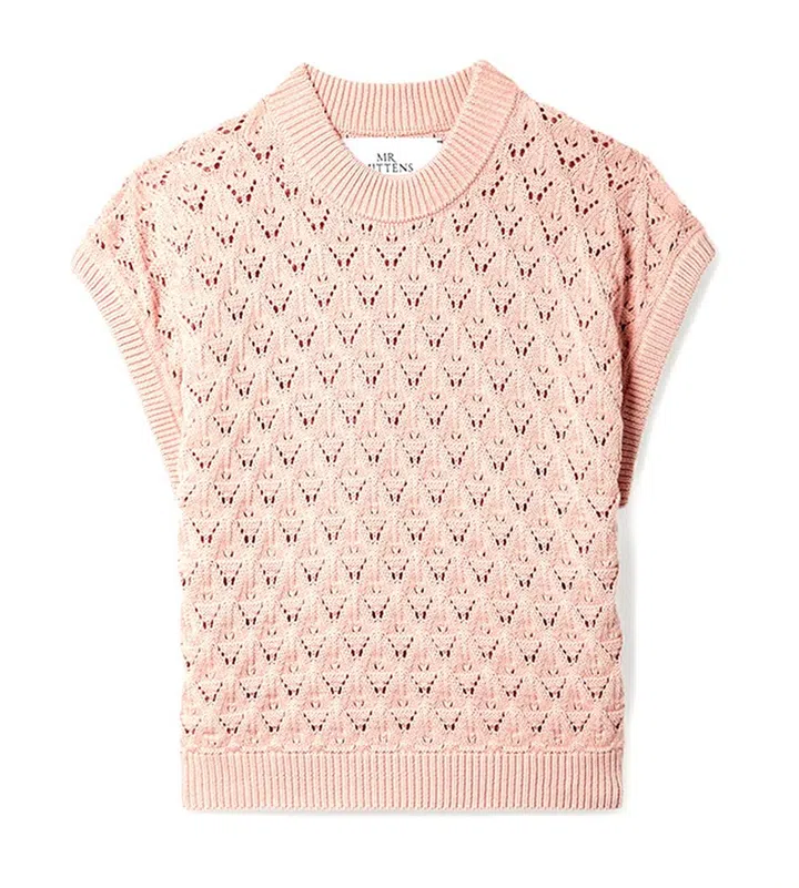 网眼设计的宽松针织上衣,让你在本地穿着既能在室内保暖,又不会在户外感觉太过闷热。可搭配同款针织短裤打造放松、休闲的随性造型,或者内搭连衣裙或百褶裙等款式展现温柔女人味。
