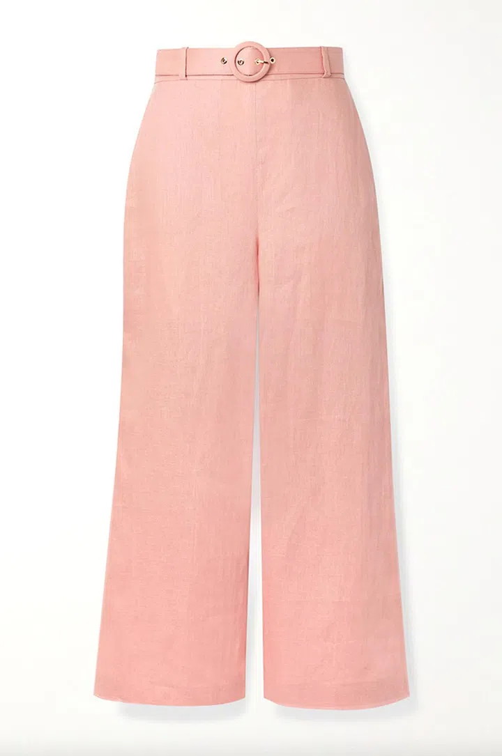 采用轻盈亚麻材质打造的阔腿长裤,装饰腰带设计,单穿搭配简约白背心或T-shirt就很好看。或者,也有同款设计的短版上衣可一并购买。