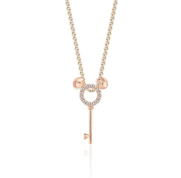 既然说到了米妮,又怎么能少了我们的米奇呢?这款玫瑰金米奇吊坠搭配一圈的钻石,以轻巧的钥匙造型亮相,精致又灵动。这样的设计既可爱,也非常适合在任何场合佩戴。心动的话,赶紧去拥有这把“鼠”于你的钥匙吧!