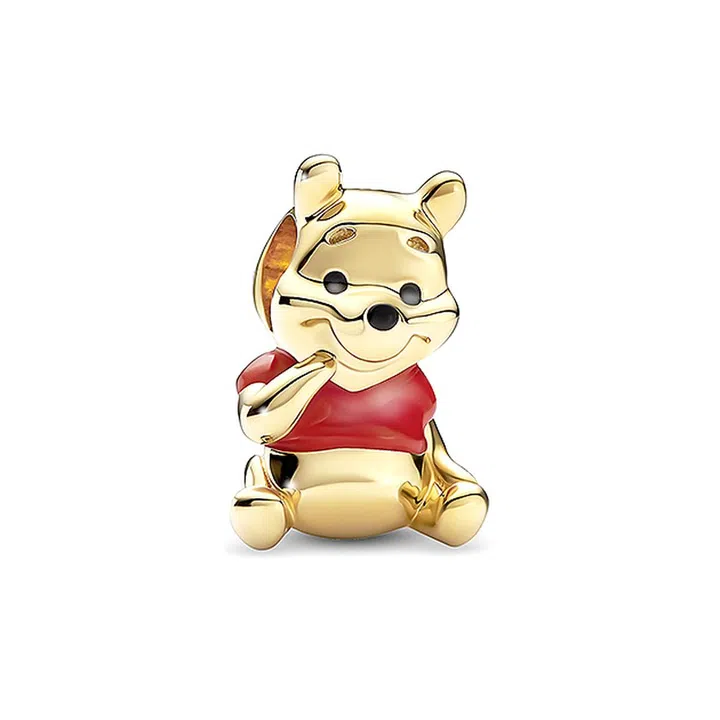 Pandora此次推出百亩森林的开心果小熊维尼吊坠。这只14K镀金的小熊,其标志性T恤采用红色珐琅设计,并增加了黑色珐琅眼睛细节,使整体造型栩栩如生。仔细观察的话,调皮的维尼正抬起爪子,随时准备品尝美味的蜂蜜。快点将小熊维尼添加到你的饰物盒中,重新点燃你与朋友共度时光的美好回忆吧!