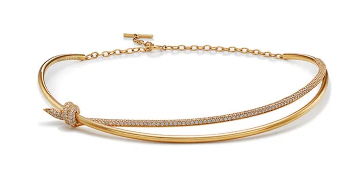 女性力量与优雅的结合,Tiffany Knot系列就如纽约城市般精致而坚韧。亮眼富贵的黄金与钻石缠绕并排,“环拷”在脖子上展示出大方与贵气。项链标志性的缠绕式末端设计也象征着人与人之间的力量与联系。项链的寓意非常适合春节里佩戴,拜年时也能打开话匣子。