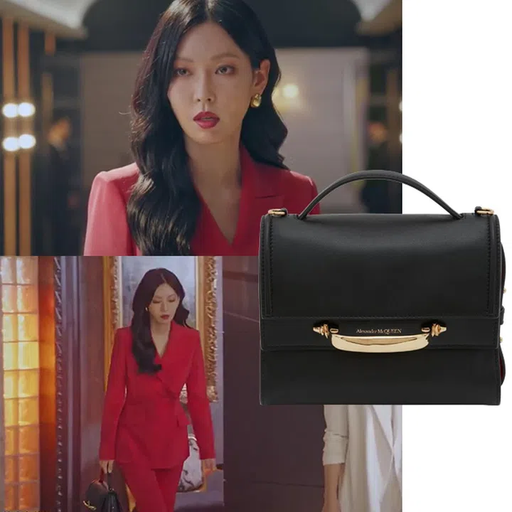 金素妍在第16集身穿抢眼的红西装,搭配Alexander McQueen包,散发一副“不好惹”的坏姐姐look。