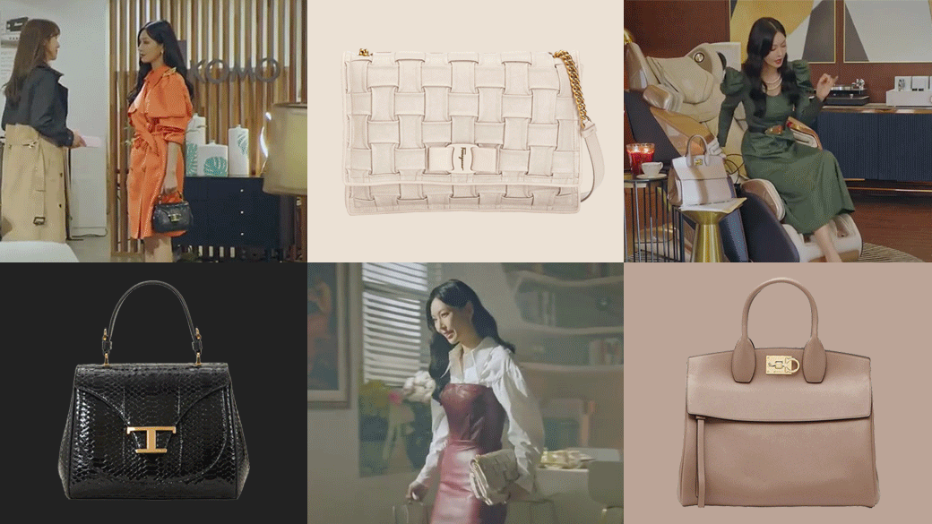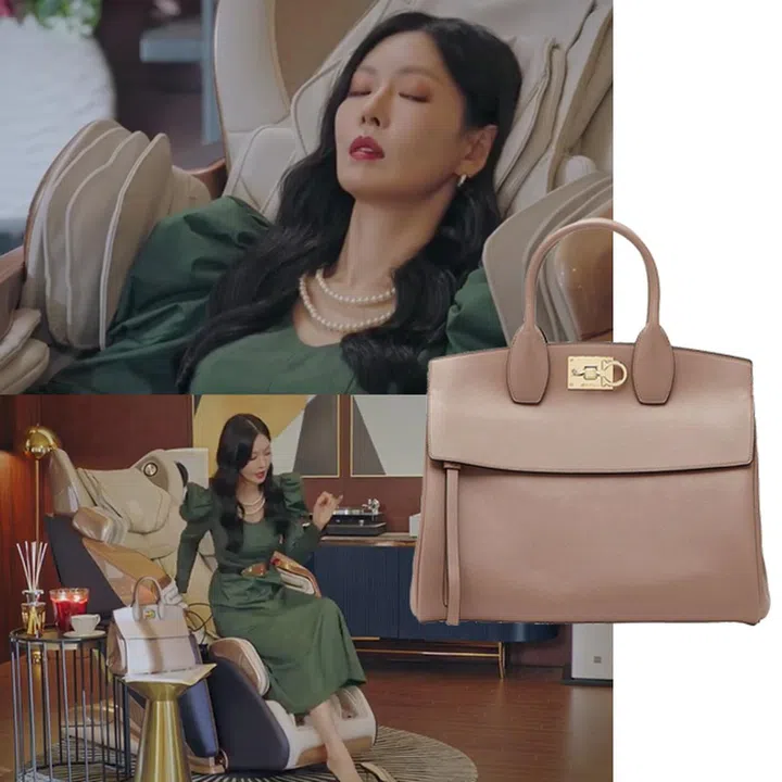 金素妍在剧中饰演超有野心的女强人,自然就拎了不少干练又实际的办公包。图里的大方形包,为Salvatore Ferragamo经典的Studio。