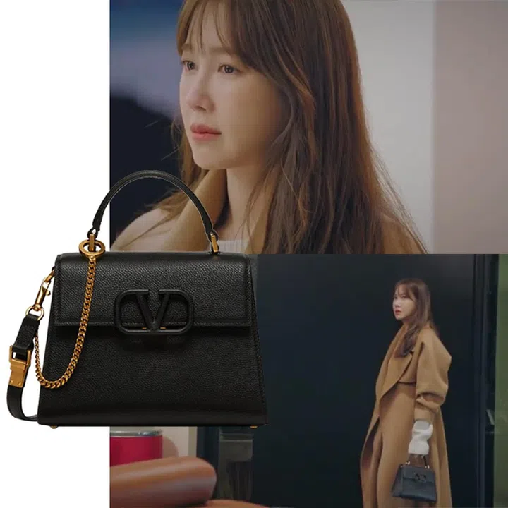 李智雅在剧中原本是一个与世无争的豪门贵妇,穿着打扮偏优雅大方。例如这身韩国品牌Avouavou驼色大衣搭配Valentino VSling包(看其他女星如何演艺这款V环包)的造型,看着就很舒服!