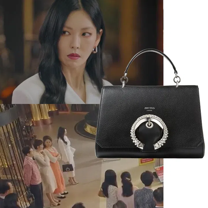 金素妍特地找出柳真的婆婆希望把她赶出赫拉宫殿,这一幕“围观看好戏”的她,手上拎的方形办公包出自Jimmy Choo。