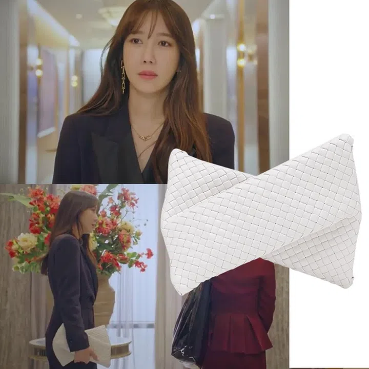 李智雅拎的这款Crisscross手握袋在剧中可是关键!柳真就是在Logan酒店房内看到桌上放的这款包,才揭破李智雅与他是一伙!