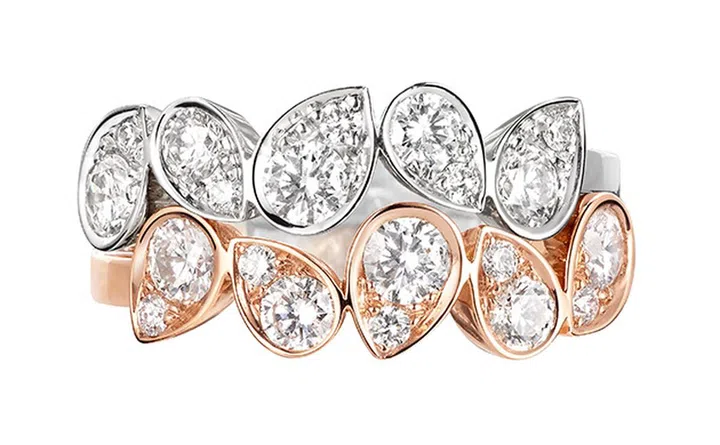 沿袭系列的叠戴风格,刻意不对称的钻石戒指同样可让你叠出专属时尚个性,让你散发现代感强烈的皇室风范。