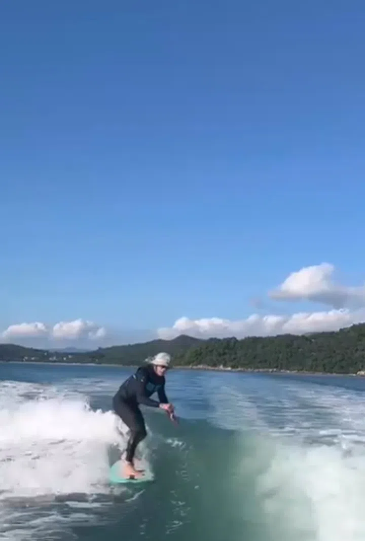中国人气男星李现自2019年演出《亲爱的,亲爱的》后,成为大家的“现男友”,镜头以外的他是个阳光男,也是冲浪爱好者,微博图像就放了自己冲浪的帅照,穿着潜水服驰骋在海浪之中,在蓝天的衬托下,“现男友”简直帅翻啦!今年五月,也有网友在中国三亚遇到他在海边冲浪。