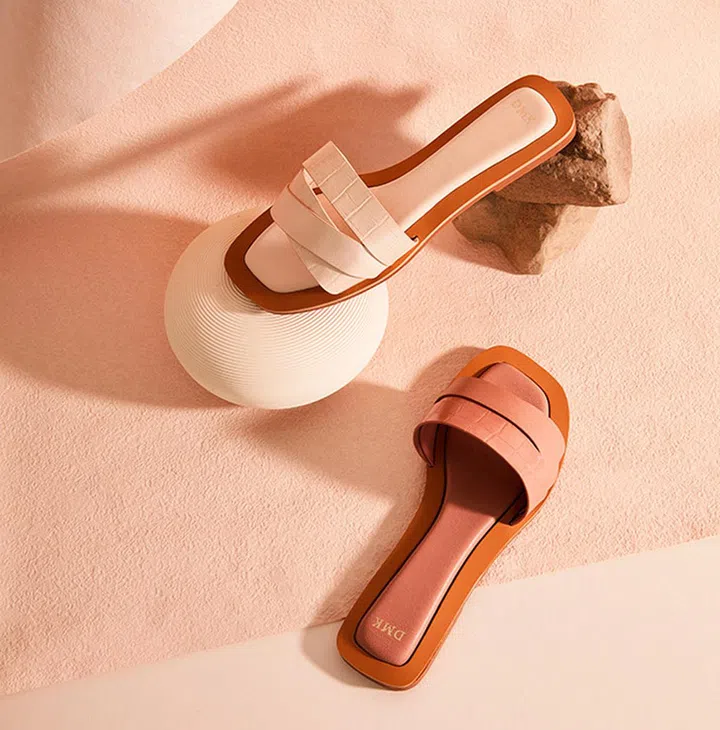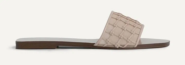 新推出的裸粉色凉拖鞋,仅以一粗一细两条鞋带做装饰,设计极简,让你穿出优雅美。建议搭配:现在超流行的“腋下包”。