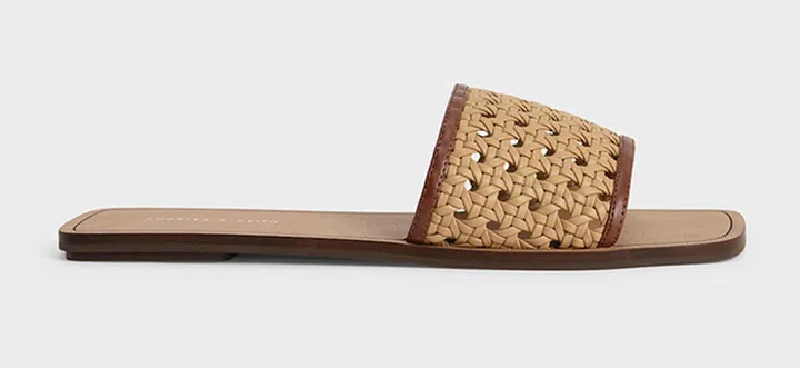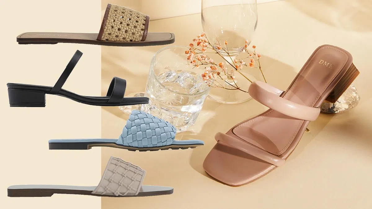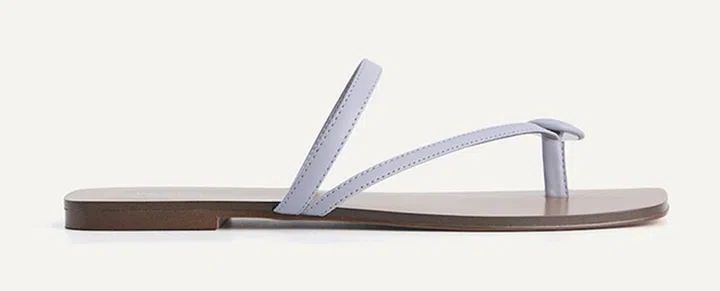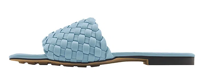 热度不退的编织拖鞋,选择清凉、柔美的淡蓝色,各种pastel色调的连衣裙都能方便地搭配。