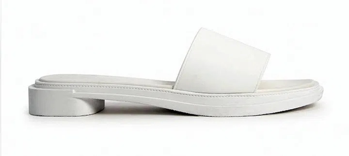 型格十足的纯白色拖鞋,可以搭配各种解构风或不对称造型的建筑感服装,以简约造型展现你的独特品味。