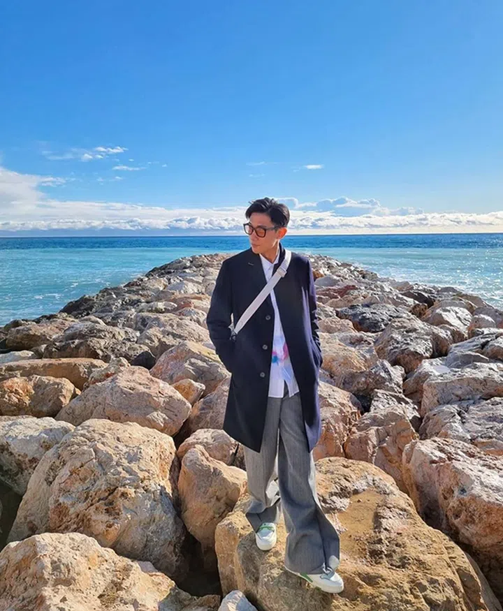 陈炯江趁着VTL开通飞往法国旅游,到浩阔的芒通海边四处游走和拍照。他身穿深蓝色大衣,内搭个性Louis Vuitton白色印花衬衫与天空的蔚蓝色形成共鸣,再搭配Louis Vuitton Trio 斜挎包, 以及廓形充满时尚韵味的宽脚长裤,穿出法式悠闲感。